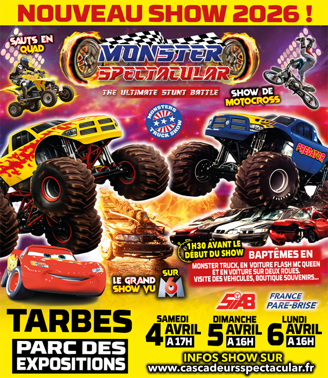 Découvrez de près des véhicules emblématiques vus à la télévision, dont l’incontournable Flash McQueen pour les enfants, sans oublier le moment fort du spectacle : le show XXL des Monster Trucks, qui écraseront des voitures sous vos yeux !