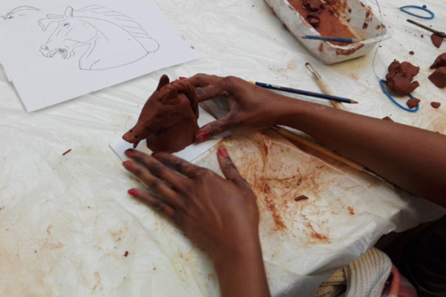 Modèle un bas-relief en pâte polymère sur le thème du cheval de hussard.