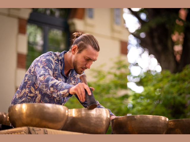 Un concert unique mêlant une trentaine de bols chantants de l’Himalaya, bols de cristal, gongs et bien d'autres instruments. C’est un voyage sonore et perceptif, propice à la relaxation et au ressourcement, à porter son attention sur ses sensations, sa respiration...