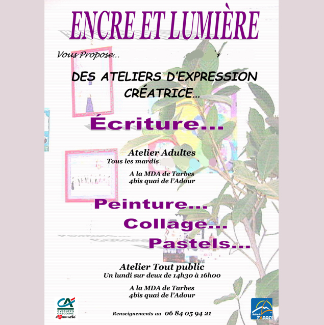 L'Association Encre et Lumière vous invite à reprendre le chemin de ses ateliers ÉCRITURE pour des créations ludiques à partir de propositions, d'images, de collages, de photos, fabrique de recueil...