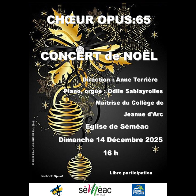 Le Choeur Opus:65 sous la direction d'Anne Terrière, vous propose un programme, empreint de spiritualité, d'espérance, sous le signe du partage, et de la solidarité, avec des chants allant du classique (Cantate Domino, Canticorum jubilo) au répertoire populaire (Noël Nouvelet, Sounats campanetos).