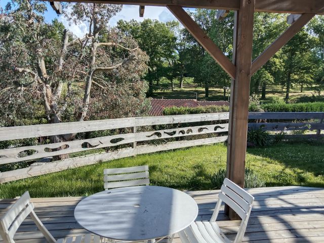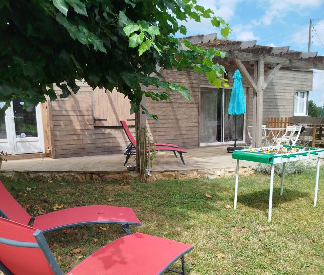 Régine et Noël vous accueillent pour vos séjours à 2 personnes en cocooning ou 4 personnes max. et connaissant bien la région, ils pourront, si vous le désirez, vous aider dans l'élaboration de vos escapades ! La campagne environnante est idéale pour randonner et faire du vélo, le lac tout proche pour pêcher, faire du paddle ou du kayak et les stations voisines pour les sports d'hiver. Une immense terrasse en bois bien exposée protégée par une pergola vous permettra de farnienter à l'ombre du tilleul sur les transats. Dans la grande pièce de vie avec climatisation réversible, un canapé modulable en lit de 180cm (2x 90cm) recevra vos amis ou vos enfants, jouxtant la cuisine américaine toute équipée. Pour plus de confort : lit fait à votre arrivée et place de parking dans la propriété.