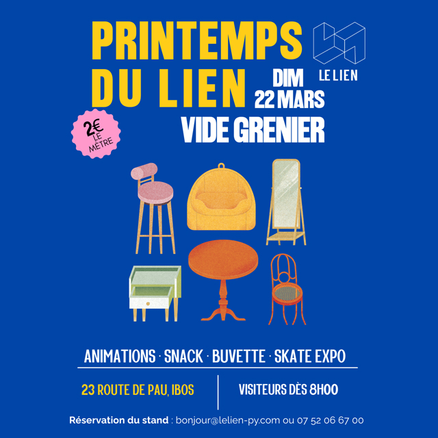 Cette année encore, le tiers-lieu Le Lien vous ouvre ses portes pour accueillir son vide-grenier, le rendez-vous parfait pour dénicher de bonnes affaires dans un espace convivial, réunissant une quarantaine d’exposants et animé par de nombreuses activités, tout au long de la journée.